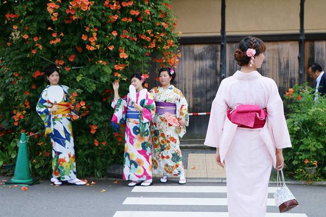 在这里的大街小巷,五颜六色的和服是一道独特的风景线。