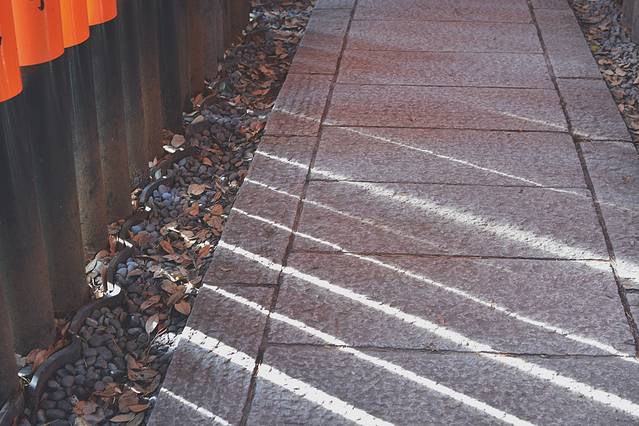 一直往里走,便能到达千本鸟居,电影《艺伎回忆录》中有一个镜头,小千代欢快的从山本鸟居奔跑而过,镜头跟随小千代快乐的背影缓缓摇动,像是穿越时空,过了这道朱红门廊,她要去许个愿,因为前一刻,他遇到了那个让他心动一生的男人,他在她悲伤潦倒之际,买给她一支雪糕,又用手帕包给她一些晚饭钱,说:以后就算再摔倒,也不要愁眉苦脸。