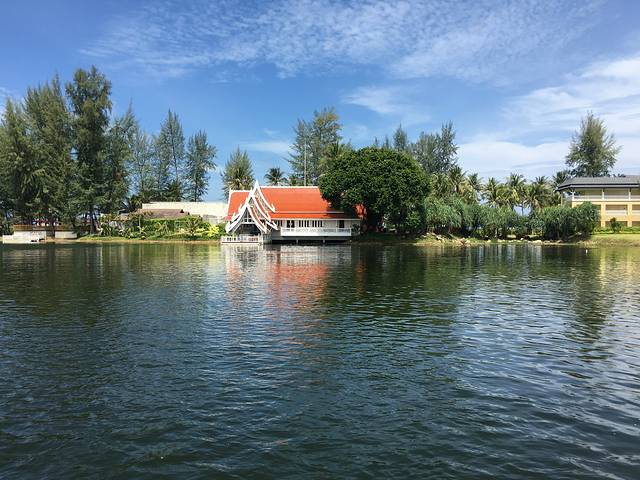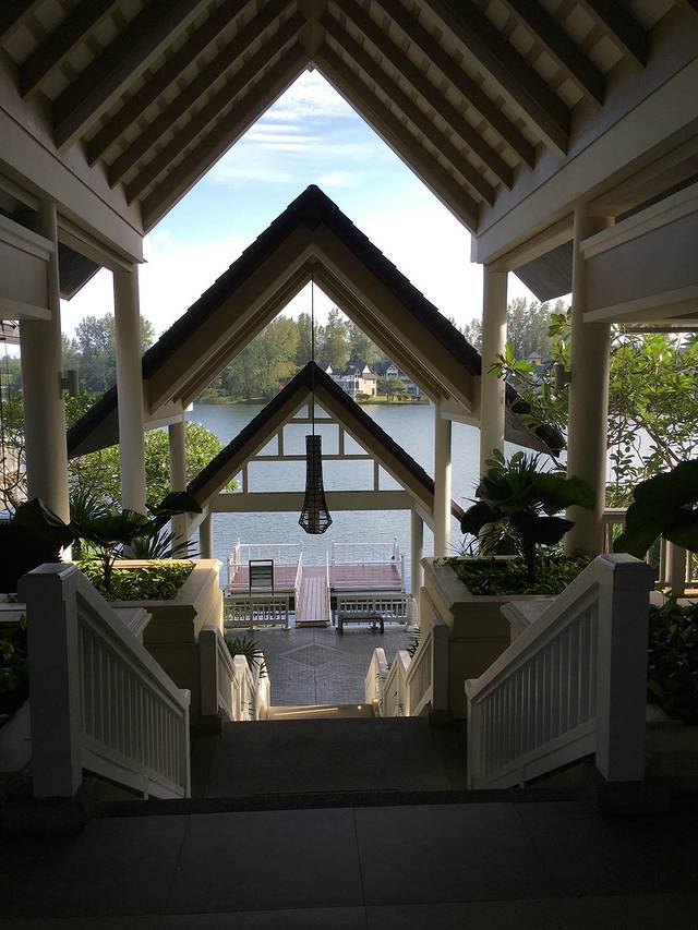 海滩没什么玩的,本来我们打算回别墅算了,儿子和粑粑迫不及待先回去再游泳了,我们剩下的人就想在酒店周围再逛逛,毕竟这么大的度假村。走到餐厅附近我们看到码头,得知可以坐船到别的悦榕庄,又可以游湖,又可以去看看高贵的悦榕庄,我们都觉得不错,就在码头边等船。