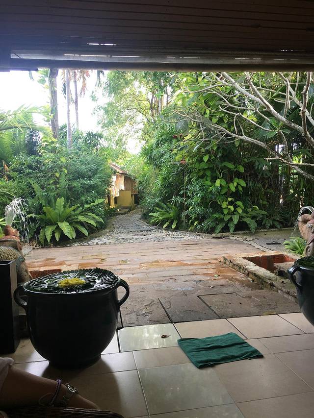 这也是泰国当地连锁的水疗馆,但相对来说比let‘s relax高端一点,自然套餐价格也贵不少了,做之前喝了酸梅汤,用了冰冻的毛巾,填了基本资料,询问力度等。房间系室外的,就在湖畔边,不是全封闭的,我在沙发上可以看到隔壁房间做草本热敷,好像很不错。阿嫂做的头发护理很奇葩,要自己洗头。我做的面部不够奈瑞儿的好,加上服务费比奈瑞儿的贵,真系后悔了,不过就当出来见识下吧。我们做完都已经快7点了,赶回去别墅都要转两趟车,回去之后马上开饭!