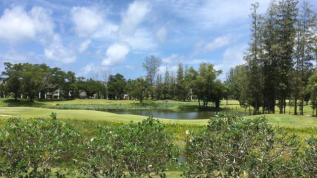 从破旧的乡间小路般的进入度假村后,感觉好像使用了叮当的随意门一样,一下子去到另外一个地方。风景优美,绿草如因,空气清新。