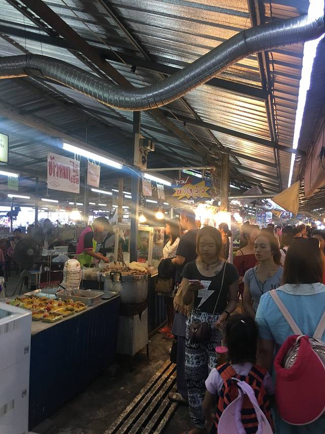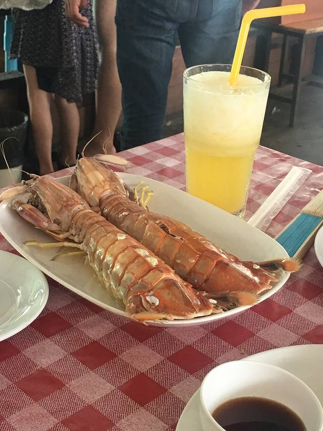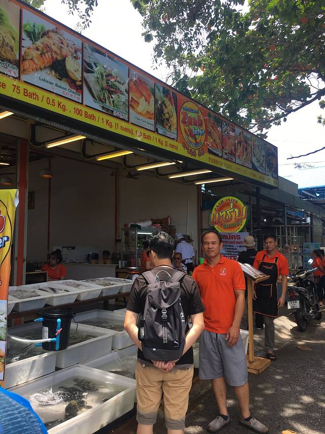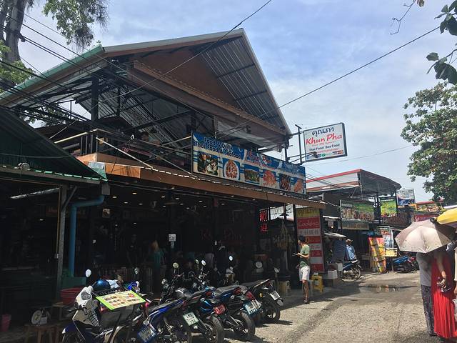 接送车回到酒店已经快7点了,天全黑了,我们都稍回房间收拾行装后就再出发外面找吃,可不能今天一天三顿都没有正式吃吧。沿着卡伦海滩走,很快就有看到菜市场,有连着几家吃海鲜的,我们挑了一家人不少的进去坐下。