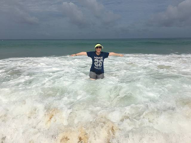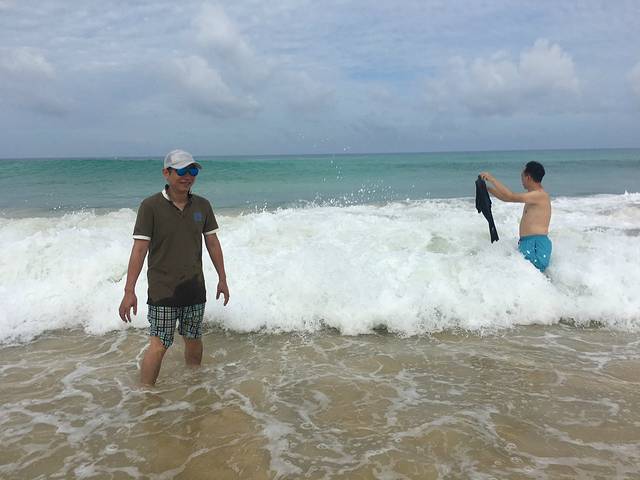 吃完早餐老老小小迫不及待又下海滩了,毕竟住在海滩边上那么方便,而且不下海滩也没找到别的消遣。今天的海浪更大,人却没那么多,就只有我们一行人在海边玩。