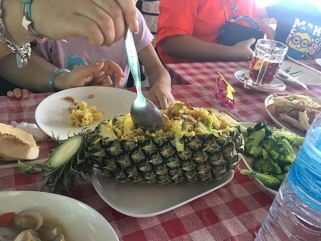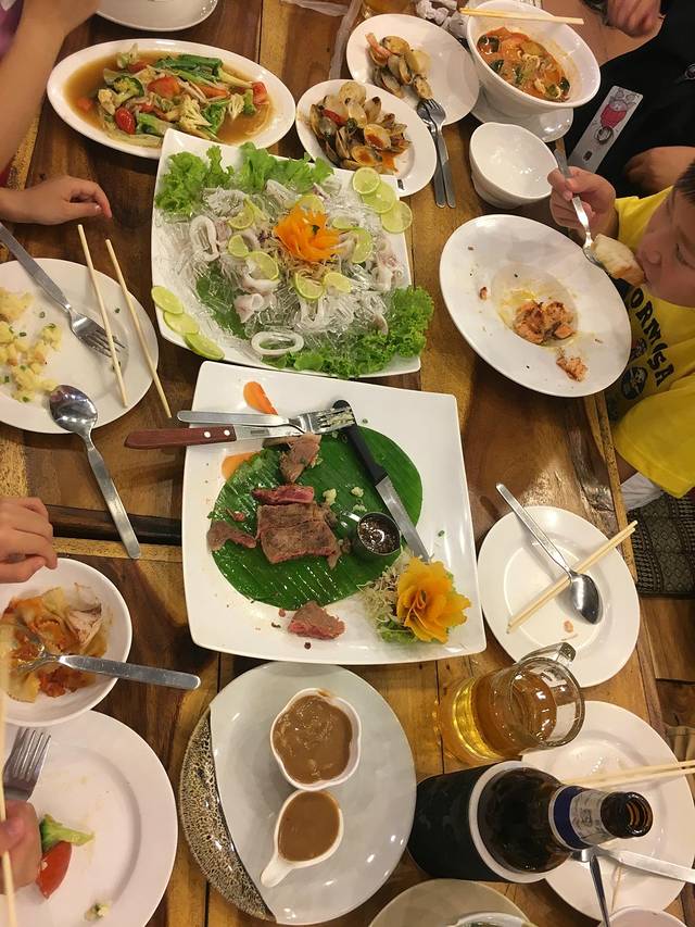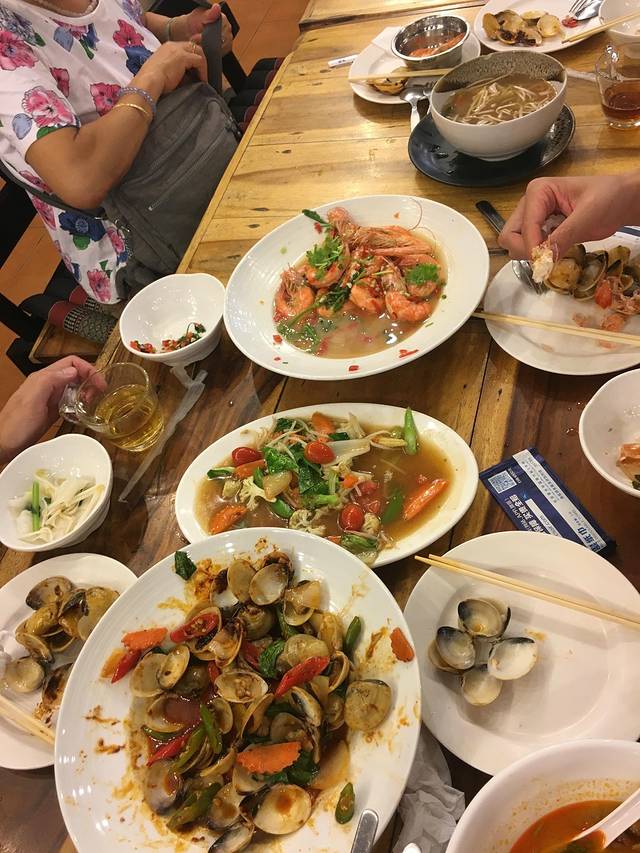 4款海鲜,另外有不少肉,1500人民币,在旅游区性价比虽一般,但味道什么都是可以的了,中间插曲是发现贝壳有臭的,但无法沟通退换,人在外而且老老小小的,还是少生事好了。