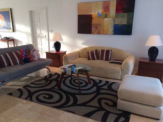 这家酒店不是很新,但保养的还算不错,空间很大,而且很近海滩,我订了两间双卧室的套房,客厅,饭厅,两个阳台,真的足够一家五口住了。一放下行李,我们就赶紧上床了,儿子兴奋完很快睡着,我玩了一会手机后也逼着自己快快入睡。
