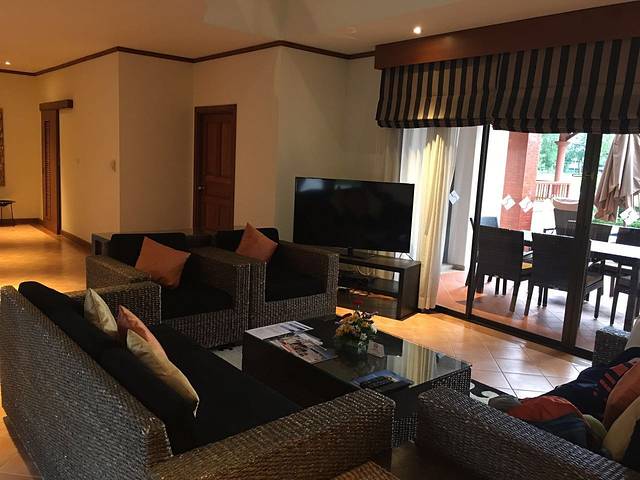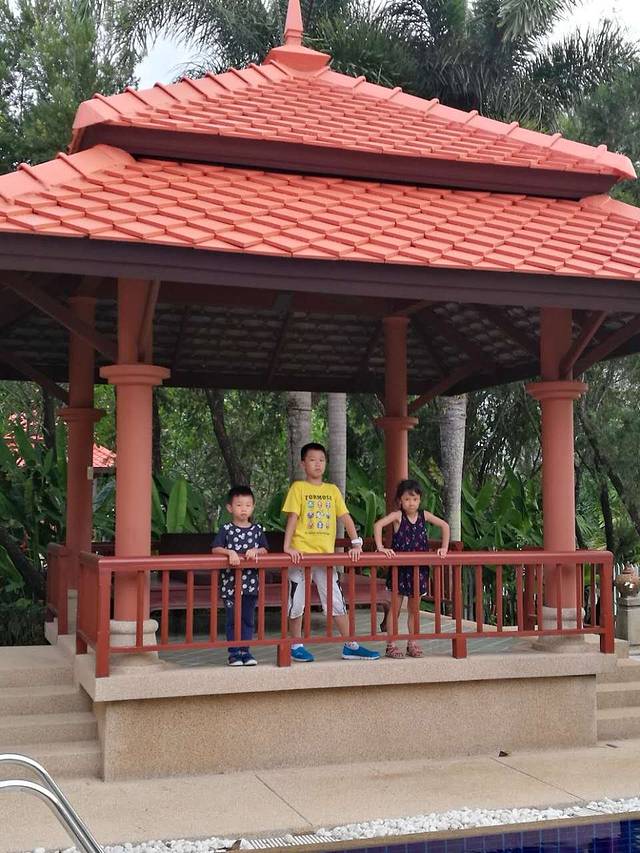 办理入住后我们要再等接送巴士去到别墅。这次订了4房别墅,平均一间房一晚上就800人民币不到,虽然是本次旅程最贵的,而且交通不方便,但作为度假是很不错的,儿子至今仍然最爱的酒店。管家带我们进入房间,教我们如何锁门和房间中的家具使用等。房间真的很不错,豪华中带点复古的装修,泳池,凉亭,二层公寓带阳台,厨房,餐桌,客厅等,让大人小朋友都很满意。