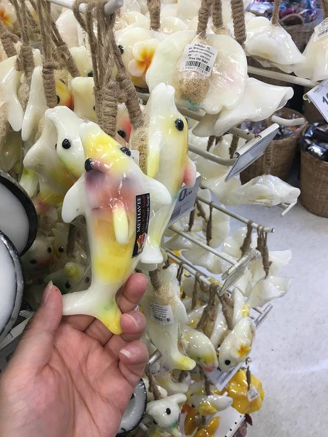 可爱造型的香皂,买了2块大象的回去,买完觉得贵了。