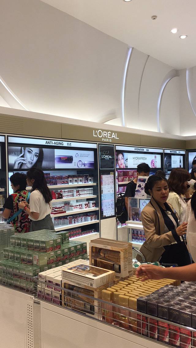 导游帮我们办好不知道什么手续后,给了一些什么介绍优惠券我们,我们兵分几路去逛了!想买护肤品,攻略说欧莱雅最划算的,但我不用这个品牌,就没有凑热闹了!最后还是在雅诗兰黛的柜台买了套装!还去了超市买了一些吃的手信!