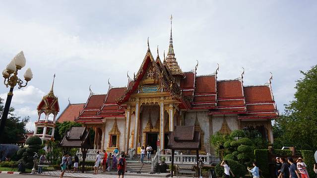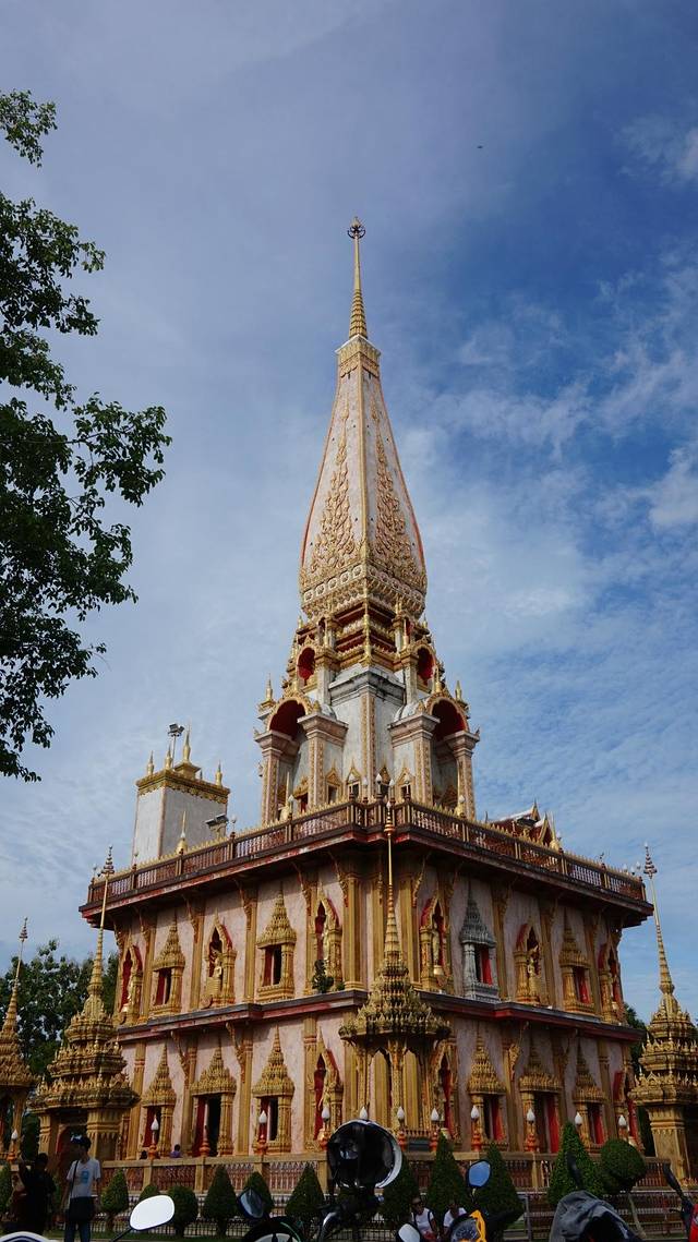 去完免税店,离太阳下山的时间还早着,包车的时间是8小时,远远没到,但实际普吉岛没有太多的地方逛,著名景点就算是查龙寺一个了!我说去一趟吧,不想看的就留在车上!估计大人小孩都累了,就只有我和妈妈下车了,其实泰国的寺庙真的挺有特色的,找准角度慢慢拍,都能拍出大片!奈何几乎没人下车,我和妈妈随便拍了几张到此一游就走了!