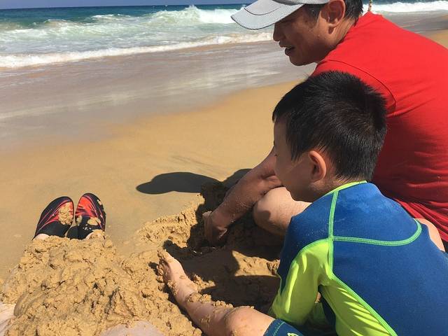 最后一天住这家酒店了,每天早上的固定节目依然是海滩嬉戏,但今天就只剩下我们一家三口了。堆堆沙,踏踏浪,晒晒太阳,一会儿就回去了,要收拾好行李退房了。