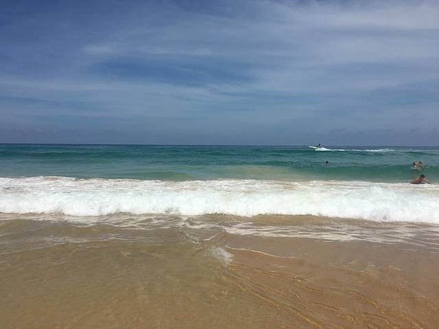 今天一早去悦椿的另外一家餐厅吃早餐,这里明显比昨天的那家人多,出品也没那么精致,但适合中国人口味的品种多一点,我们吃完后就走出去海滩,这里的海滩叫班涛海滩,也是很长的一个海岸,走出去沙很扎脚,风很大,浪也很大,基本不能下水。