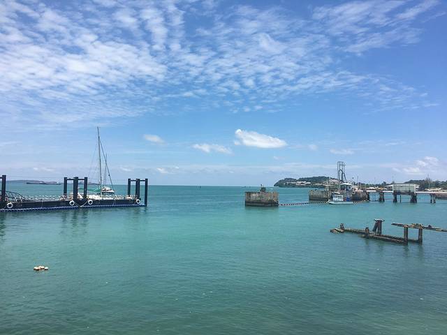 我们12点半左右就到了码头了,正午阳光明媚,因为是好几辆车从不同的地方接送不同的客人的,我们早到只能在码头等了,这等人的时间真的挺不耐烦,又热又晒,还没什么地方做和消遣。唯一觉得风光不错的码头边都拍过好几回了。