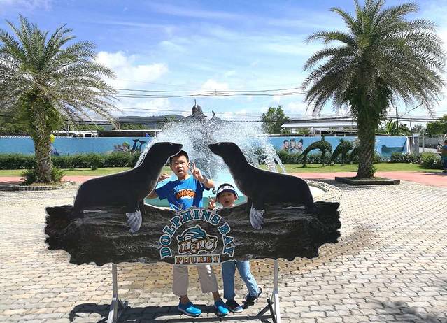 海豚馆门口兄弟俩拍照留影。