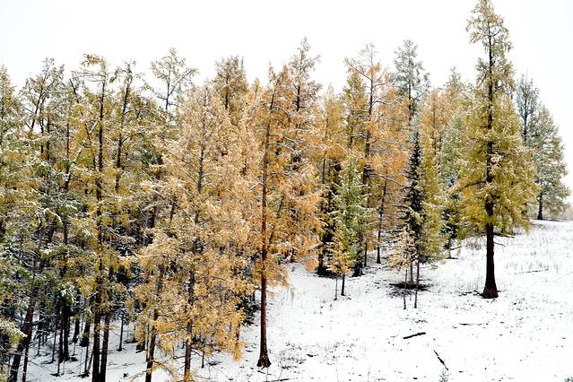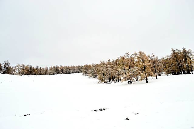因为昨天晚上下雪,路比较滑,一个半小时之后终于到了喀纳斯换乘中心(注意啦!注意啦!在喀纳斯不管你要去哪里,你都需要再换乘中心坐车哟)。