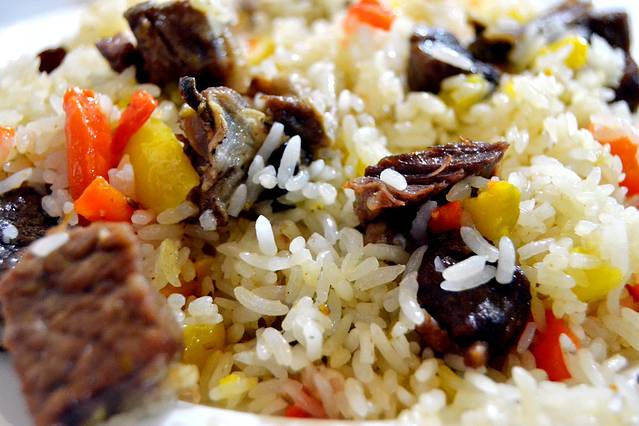 本来点的羊排抓饭,可是没有了,就直接要的碎肉抓饭。米饭一颗一颗的很有嚼劲,肉质也很嫩,不软不硬,刚刚好,里面的葡萄干、胡萝卜夹着米饭,这样的颜色搭配太有食欲。