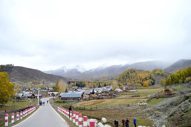 去门票站的区间车,像一个车队一样浩浩荡荡的,1个小时左右就到达了。之前网上查的说是有班车从门票站到禾木,然鹅,我现在问的却是没有,只有跟人家拼车。在等W的同时就去问了几辆车,都要100元/人,最终我们三个人一辆车去禾木了,还是100元一个人。