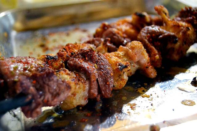 红柳肉串:吃了新疆的几次羊肉串,好像这边都是一块肥肉一块瘦肉这样夹着烤的,要一口咬下一块肥肉一块瘦肉这样才好吃,分开的哈,肥肉太闷了。
