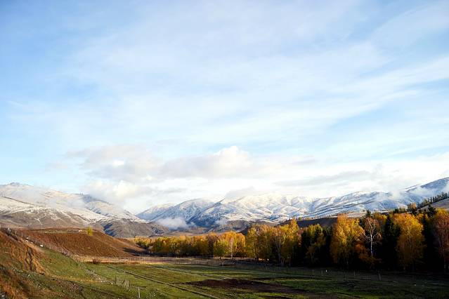 我很喜欢可可托海这个小镇,对比禾木,她很干净,在来可可托海的路上,会遇见野鸭湖与可可苏里。听车上的大姐说着这里的春夏秋天,春天有大片的花海,夏天公路两边会有满地的向日葵花,现在依旧可以看见还有未收的葵花籽,秋天有一望无际的麦田,冬天白茫茫的一片,洁白无瑕。车上看到的可可苏里,芦苇在风的带领下,摇曳着。