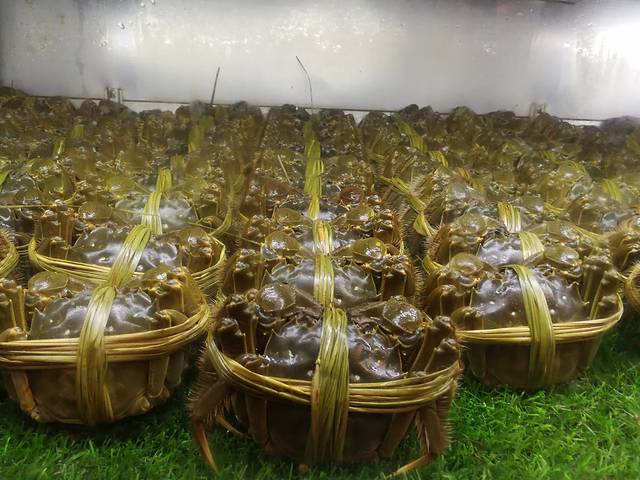 餐厅🍴的门口摆放的满满的全是螃蟹🦀️🦀️🦀️