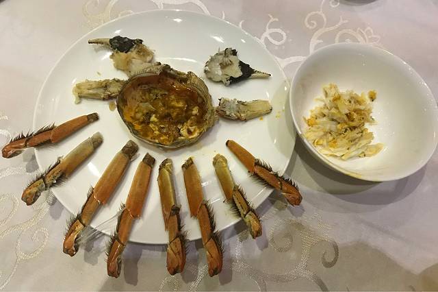 就像墨分六色,琴具七音一样,大闸蟹🦀️也有多味:蟹肉一味,蟹膏一味,蟹黄一味,蟹子又一味。而蟹肉之中,又分“四味”:大腿肉,丝短纤细,味同干贝;小腿肉,丝长细嫩,美如银鱼;蟹身肉,洁白晶莹,胜似白鱼;蟹黄,妙不可言,无法比喻。在这个秋高气爽的季节,真可谓是“爽爽的天,爽爽地吃”。😋😋😋