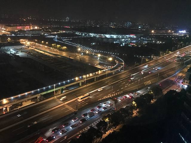 站在窗边看到的城市风景🌃,照片上面圆形建筑是上海南站,大概🚖打车几分钟就能到!