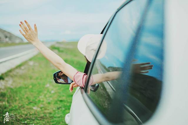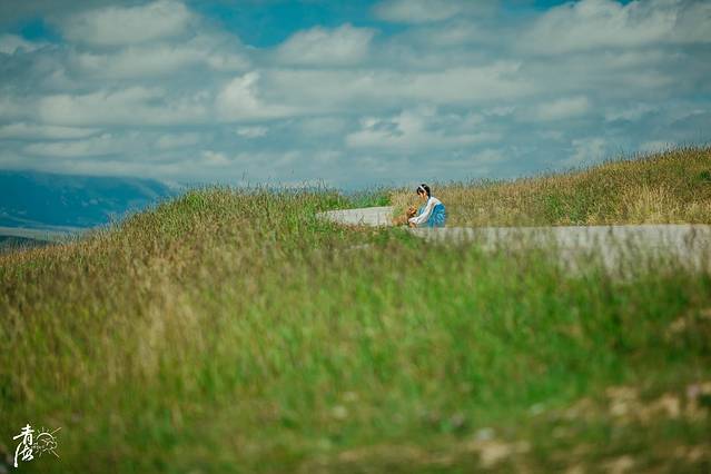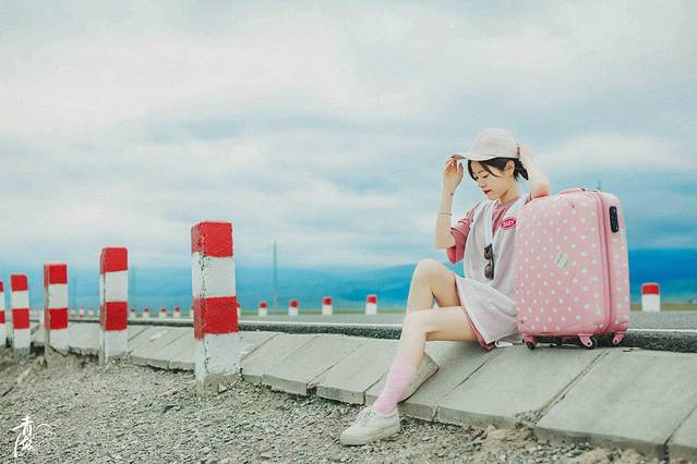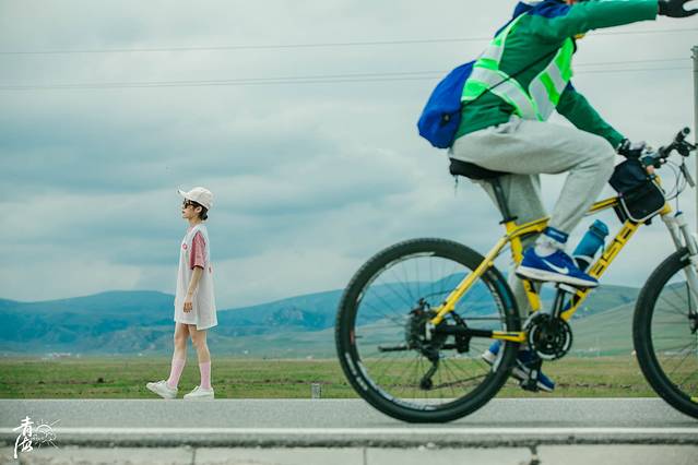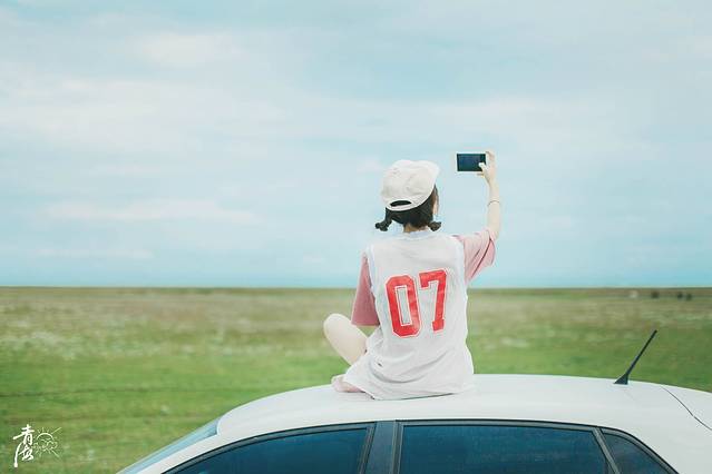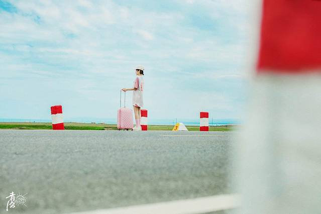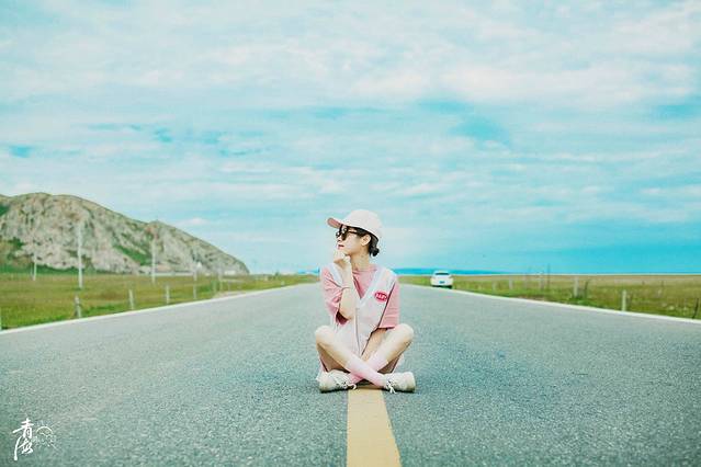 一直在路上奔驰,差点忘了来一组公路片,坐在无人公路上拍照仿佛成了来大西北的打卡项目,于是我们选了最美环湖西路上的一段,准备上演一场小清新公路片。