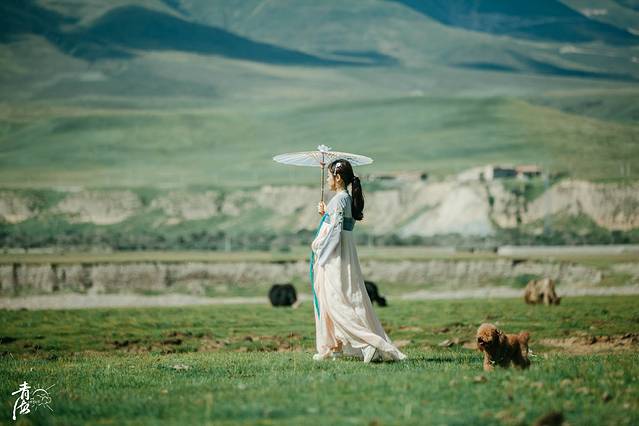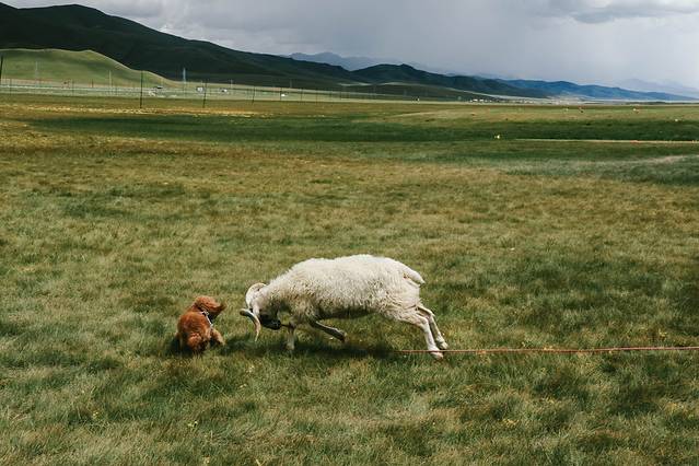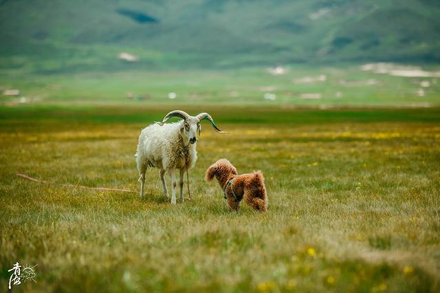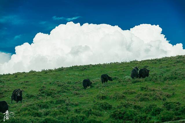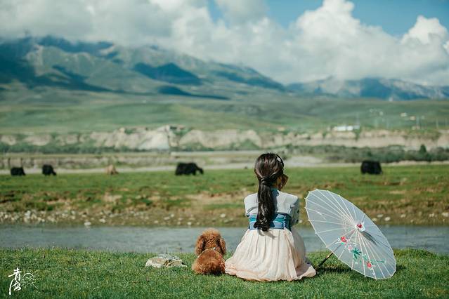 和兔一起静静发呆,看看小溪对面的牦牛们。一会儿兔就要去溪那边玩水了,阿伟问我去不去,想想还是算了吧,本嘟的毛发被水弄湿了不方便打理不方便上镜,而且万一影响了兔在涉水时的安全那多不好。