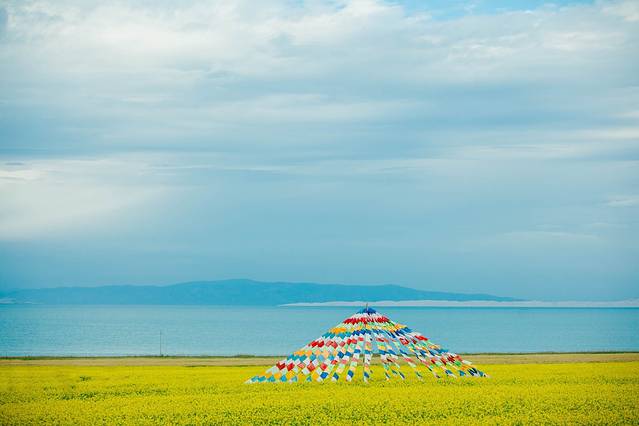 偶然在别人的攻略上发现的一处秘境,强推!人非常少!不是景区但是风景一级棒!只能自驾或包车前往,导航定位尕日拉寺,一路往天上开就会到达。我发现这边只要是某某寺这样的地方,风景绝不可能差,开玩笑,修行的选址能错吗?断崖,湿地,寺庙,巨型经幡,触手可及的云朵,牧羊人在放牧,以及俯瞰青海湖的视角,这视角绝对秒杀二郎剑那边只能飞到半空还被绳子拴着的热气球。