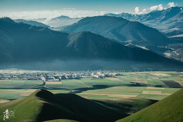 抛开景区的管理不说,本嘟觉得卓尔山丰富立体的景致已经值回票价,有高峰有缓坡,穿插着山间的云海,成片的山脊就像大地穿上了一件西域风格薄纱随风起皱,远方森林与草甸齐飞,山谷中的晨雾里点缀着稀稀落落的小屋,这边有丹霞山壁的苍凉,转过头又看见那边草坡上悠闲吃草的毛牛,啊,让我忍不住引吭高歌一曲:(被捂嘴)