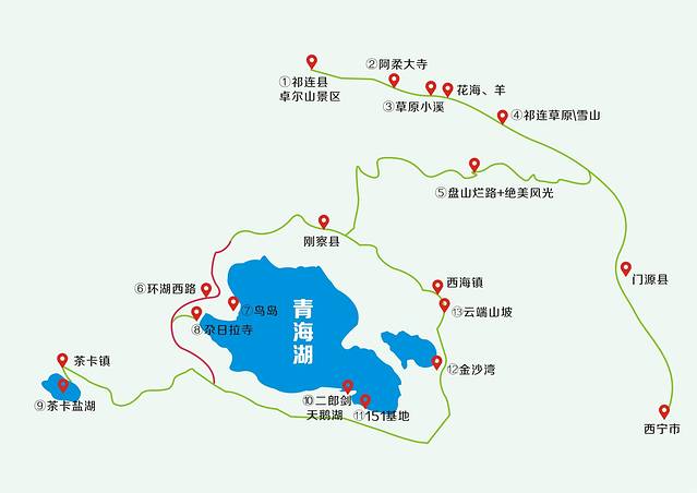 阿伟:这回最初的打算是环青海湖一圈,每个景点都打卡式走一圈,再一路上随机碰见美景。后来看见祁连草原的风景确实太美,所以决定先直接去祁连,然后再折回青海湖。具体行程:
