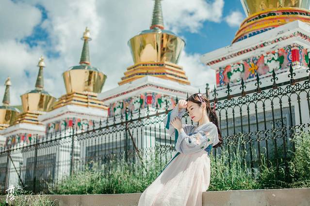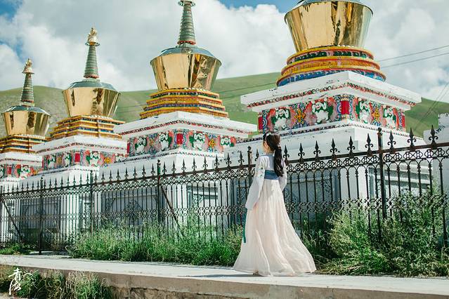 寺里游客并不算多,整体金碧辉煌的建筑内部却挺宁静,可以看见一些虔诚的藏族人民和寺内的喇嘛在转经。寺庙分大小好几个院落,兔这一身传统服装进去逛逛让本嘟有一种时空交错的感觉,像是回到了古代汉藏民族文化交流的盛会