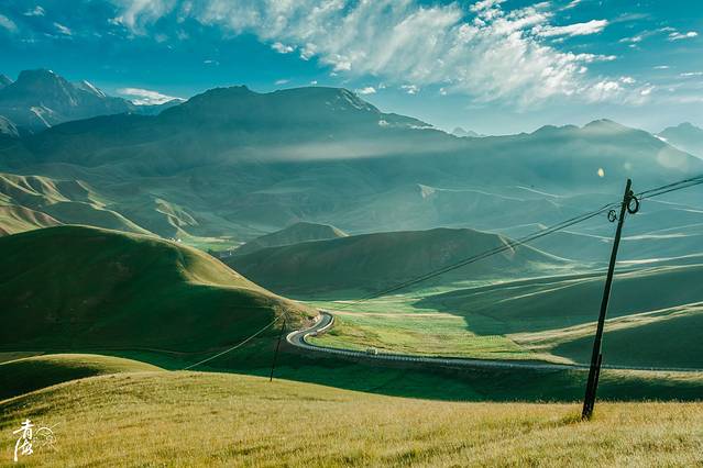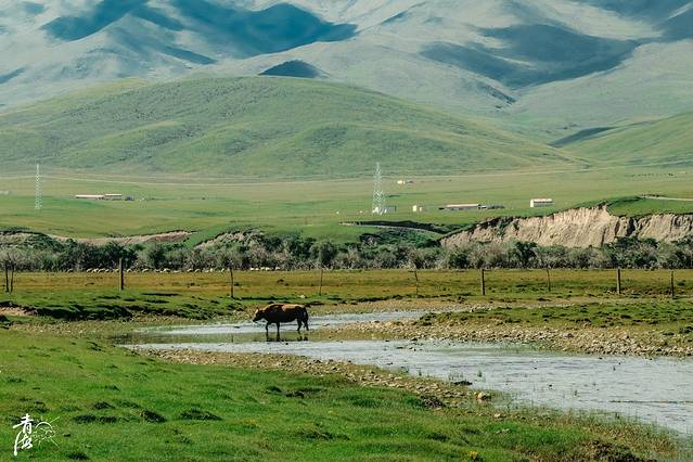 告别这片美丽的河滩,我们继续朝祁连大草原赶路。其实严格意义上讲我们一直就在祁连大草原里,一路上全是碧草莺莺落英缤纷,让本嘟心旷神怡,太阳也逐渐升高,晒得我暖洋洋的想睡觉