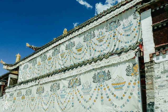 寺外的山坡上一座巨型的经幡,比之前看到的那些微型经幡大太多了,壮观地让本嘟抬头仰望。