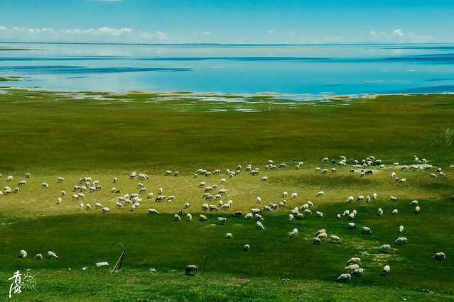 今儿个天气继续给力,青海湖在阳光的照射下就像一块碧蓝的泳池,哦不,宝石,上面闪着璀璨的光,远处湖光山色与天相接,有一种说不出的神圣感,让本嘟有一种膜拜的冲动。