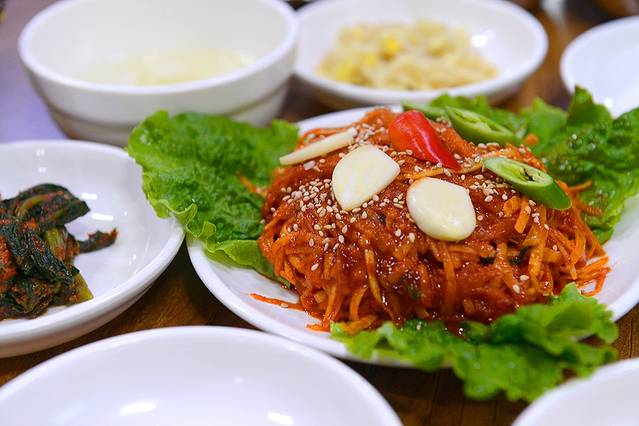 在丽水虽然好吃的,可吃的很多,但是吃的最多的一样就是生拌龙利鱼了。龙利鱼从以前开始就是南海,尤其是在丽水主要捕食的鱼类。而在丽水做的生拌龙利鱼可以说是味道最好的。生拌龙利鱼呢是用龙利鱼和各种蔬菜,辣椒酱,以及马格利酒入味后拌出来的料理。爽口甜辣的生拌龙利鱼跟其他生拌菜比起来可以说是味道上品了。