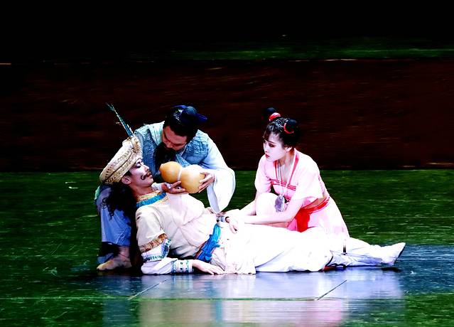 一开始便是很有名的千手观音舞蹈,照片没有把握好角度,但是现场看起来,真的是超级美哦。下面再上几张美照,自行感受吧,整个演出是围绕丝绸之路上的故事开始的,然后有敦煌文化的元素以及莫高窟壁画文化。