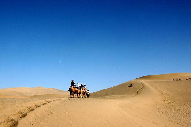 在鸣沙山游玩的时间可以安排充裕一点,因为这里能被开发出来的乐趣实在太多。从看完月牙泉之后,上面有个月泉阁,这里没什么看点,可以在这里休息。