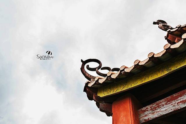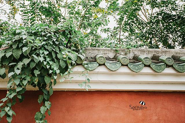 朱红色的建筑主体和植物的绿色冲撞在一起,韵味十足。