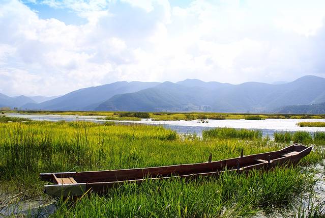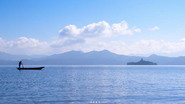 坐在猪槽船舷上 任由清亮的湖水 放肆的绿意 以及苍翠的山峰 包围着我