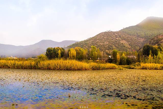 正是好季节,驾车从苍山洱海间穿过,只见道路两旁的景色都已换上秋装。有时黄绿相间;
