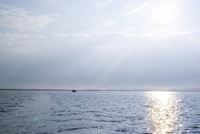 回眸望去,更多的船搭载着早起的游客驶进亮海,此时风逐渐停止,太阳正试图把光芒洒满整个湖面,水天一色,湖面又逐渐平静下来,再次变幻出一幅绝妙的画卷将我们围绕。