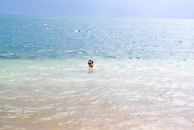 Tips:游览明星鱼洞不需要门票,跟停车场管理员说想参观一下房车营地或者帆船基地,可享受2小时内免停车费优待哦~呵呵,强烈推荐值得一去的地方,最主要是游人少空气好、沙滩沙质柔软细腻、湖岸有2公里长的风景线、以及观湖视角效果绝佳这四个优点。
