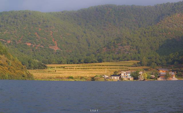 放眼望去,湖边农家的玉米地也已经向我们展示出秋天独有的金黄色彩。