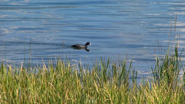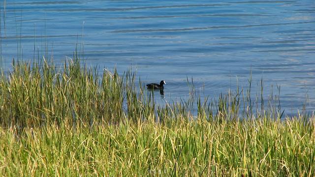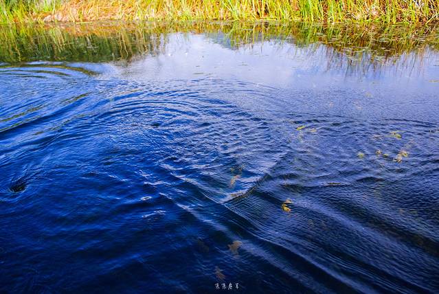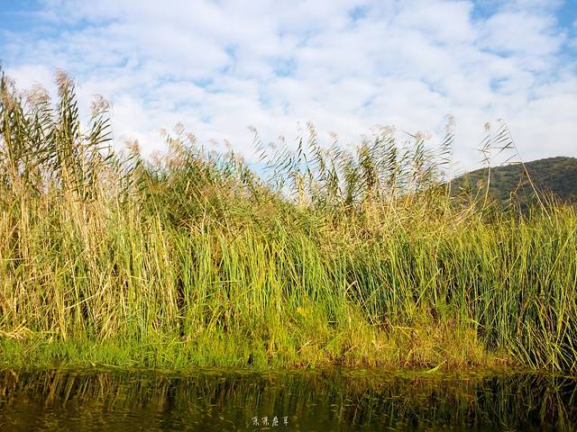 晨间阳光被云层遮住,草海深处的景致已经告诉人们秋天已然到来,没有阳光直射的水面依旧是那样湛蓝。