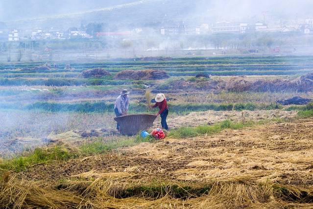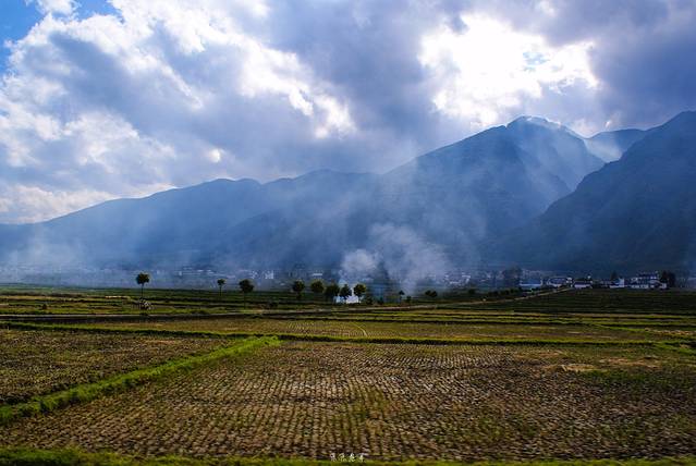 农忙后的烟雾与苍山上的云雾化为一体,直冲苍穹;