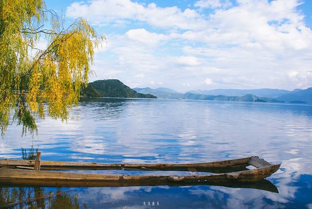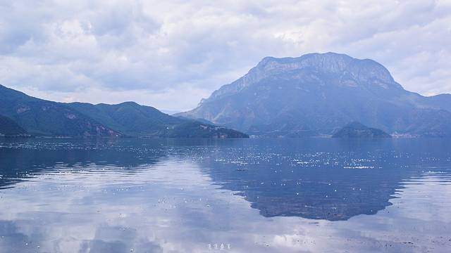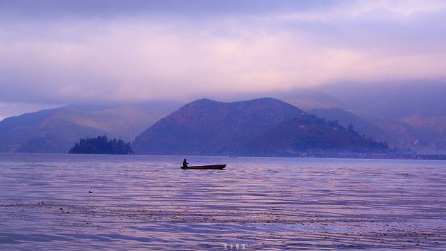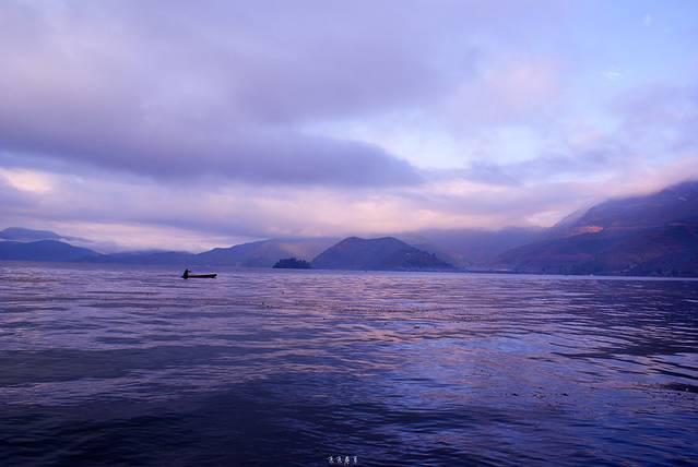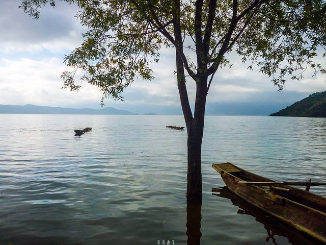泸沽湖的水和周围的景致总是变幻的,即使同一天也会展现出无数不同的色彩,给人一种神奇又心醉的感受。我们到达的第一天清晨 草海附近,湖水与远山淡淡的水墨画风。绚烂行程就从这幅水墨画开始吧。