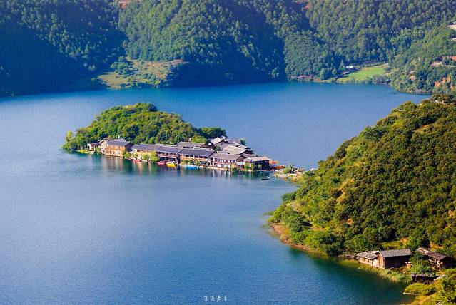 题外话:一直不清楚为什么很多游客放弃由草海乘船驶入亮海这一段行程,而只乘船游览里格岛。我在此极力向大家推荐这一段游船行程,具体是草海——亮海——王妃岛行程,建议起个大早,乘坐每天最早的几班船,早晨如梦似幻的光线伴随你徜徉在草海的幽深绵长里;由草海驶向亮海那一瞬间辽阔取代曲折的豁然,定会让你沉醉期间。