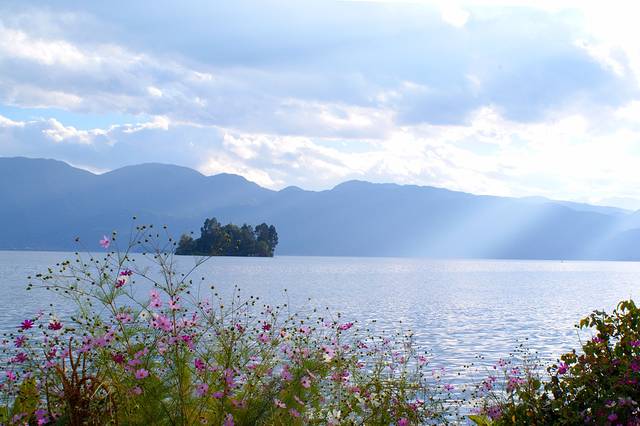 随着光束的增加,色彩愈发斑斓。无疑,淡绿就是我对滇池的第一印象了。