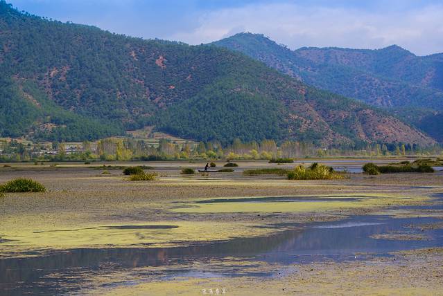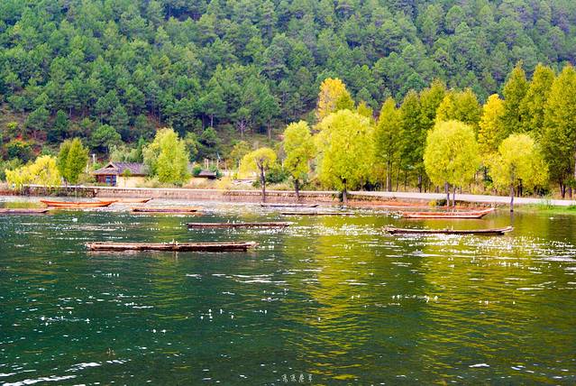 我们乘上清晨第一班从草海码头发出的猪槽船,开始感受晨风吹拂带来的惬意,体验草海的秋季为我们铺展开来的画卷。