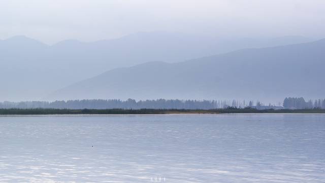 清晨,我们起了个早,来到海埂大坝,当时还不见海鸥的身影。薄雾笼罩下的滇池显得较为平静。远处错落帆船的装点也甚是好看。
